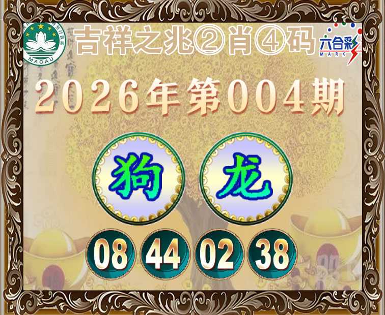 004期:【吉祥之兆】 ✂️②肖④码✂️【狗龙】【08.44.02.38】开:鸡45错