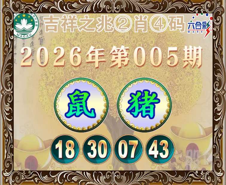 005期:【吉祥之兆】 ✂️②肖④码✂️【鼠猪】【18.30.07.43】开:猪43准