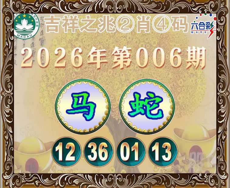 006期:【吉祥之兆】 ✂️②肖④码✂️【马蛇】【12.36.01.13】开:蛇13准
