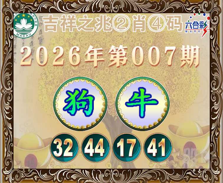 007期:【吉祥之兆】 ✂️②肖④码✂️【狗牛】【32.44.17.41】开:牛41准