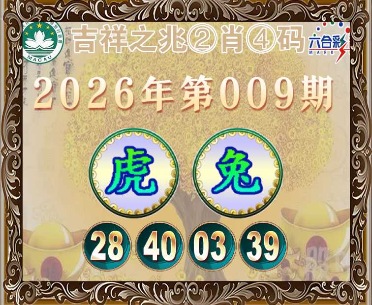 009期:【吉祥之兆】 ✂️②肖④码✂️【虎兔】【28.40.03.39】开:虎28准