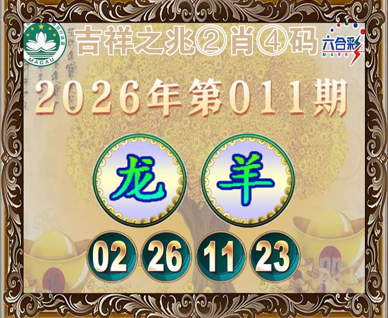 011期:【吉祥之兆】 ✂️②肖④码✂️【龙羊】【02.26.11.23】开:羊11准