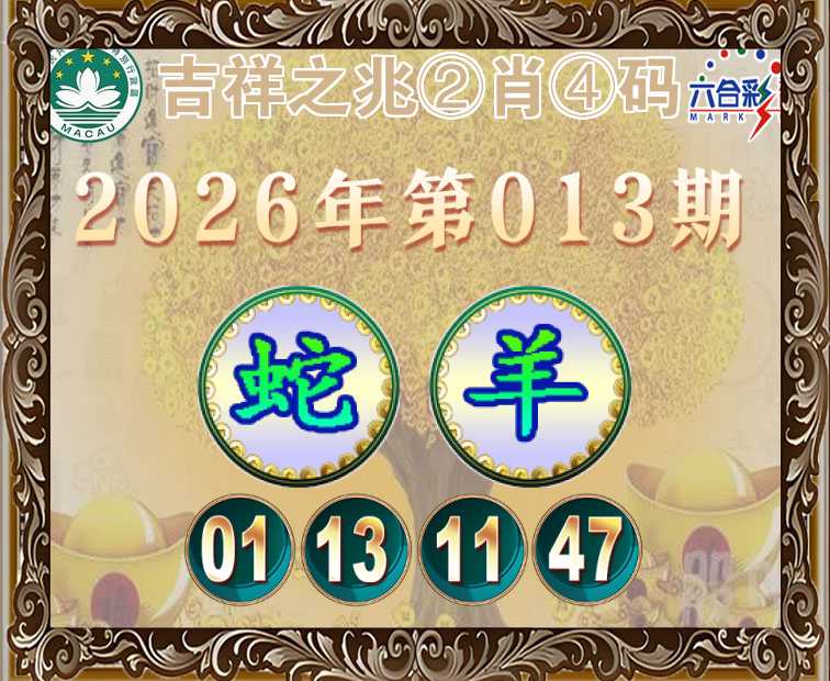 013期:【吉祥之兆】 ✂️②肖④码✂️【蛇羊】【01.13.11.47】开:蛇01准