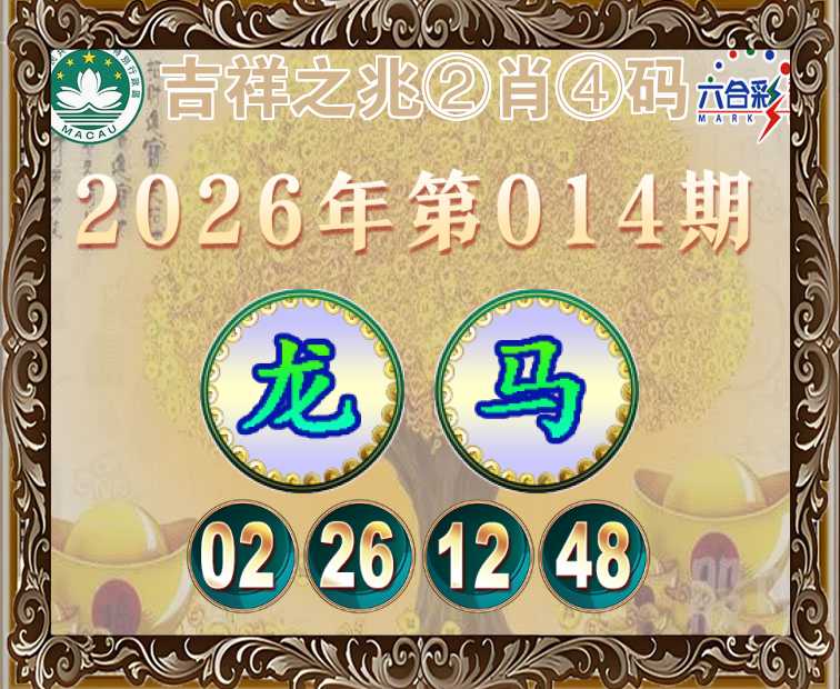 014期:【吉祥之兆】 ✂️②肖④码✂️【龙马】【02.26.12.48】开:龙26准