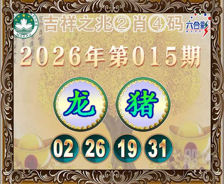 015期:【吉祥之兆】 ✂️②肖④码✂️【龙猪】【02.26.19.31】开:猪31准