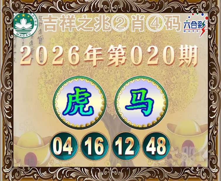 020期:【吉祥之兆】 ✂️②肖④码✂️【虎马】【04.16.12.48】开:马12准