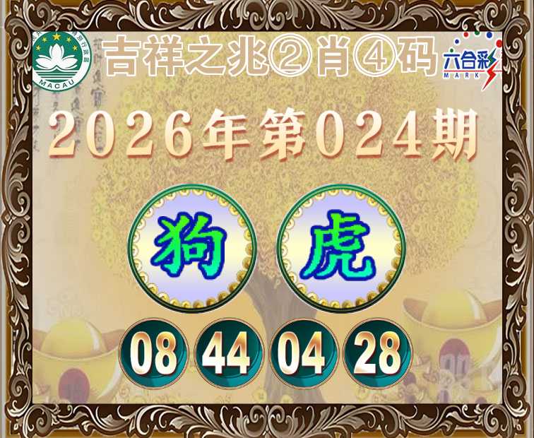 024期:【吉祥之兆】 ✂️②肖④码✂️【狗虎】【08.44.04.28】开:虎28准