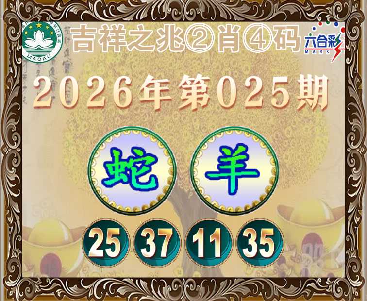 025期:【吉祥之兆】 ✂️②肖④码✂️【蛇羊】【25.37.11.35】开:蛇37准