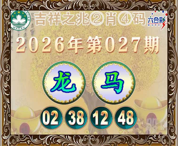 027期:【吉祥之兆】 ✂️②肖④码✂️【龙马】【02.38.12.48】开:鸡45错