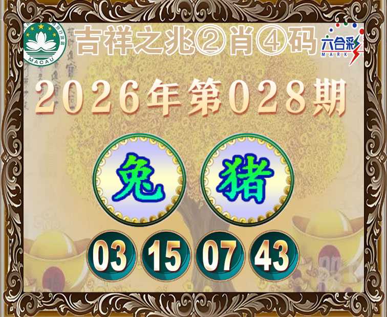 028期:【吉祥之兆】 ✂️②肖④码✂️【兔猪】【03.15.07.43】开:兔03准
