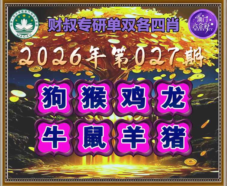 027期:【财叔专研】 🍔单双各四肖🍔开:鸡45准