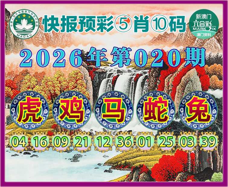 020期:〖快报预彩〗 🐁⑤肖⑩码🐁【虎鸡马蛇兔】开:马12准