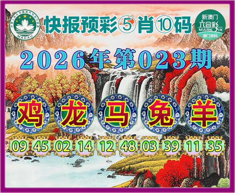 023期:〖快报预彩〗 🐁⑤肖⑩码🐁【鸡龙马兔羊】开:羊47准
