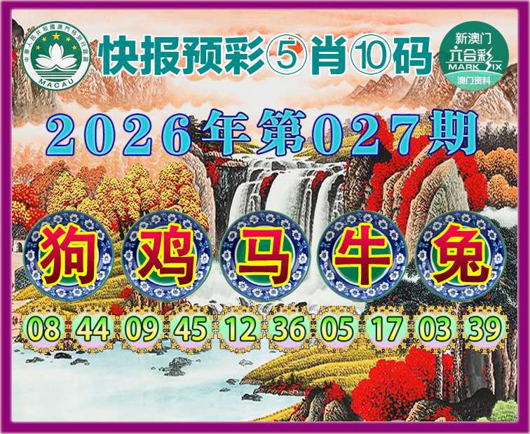 027期:〖快报预彩〗 🐁⑤肖⑩码🐁【狗鸡马牛兔】开:鸡45准