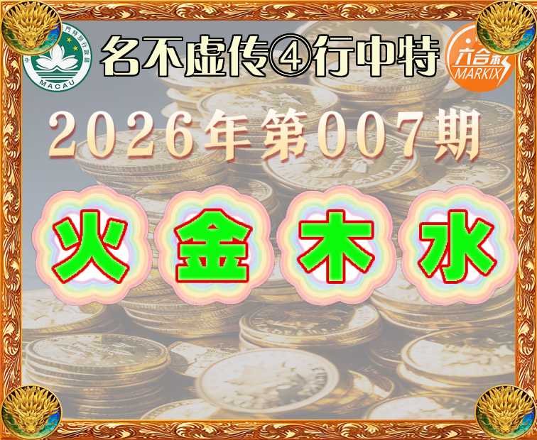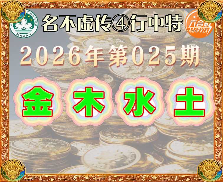 014期: 🍙《名不虚传》 🍙④行中特🍙【金.木.水.土】开:金26准