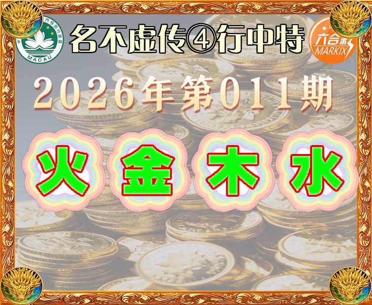 011期: 🍙《名不虚传》 🍙④行中特🍙【火.金.木.水】开:金11准