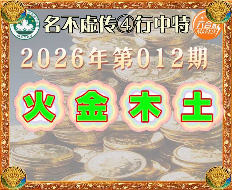 012期: 🍙《名不虚传》 🍙④行中特🍙【火.金.木.土】开:金11准
