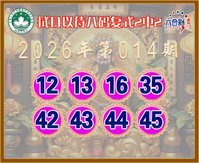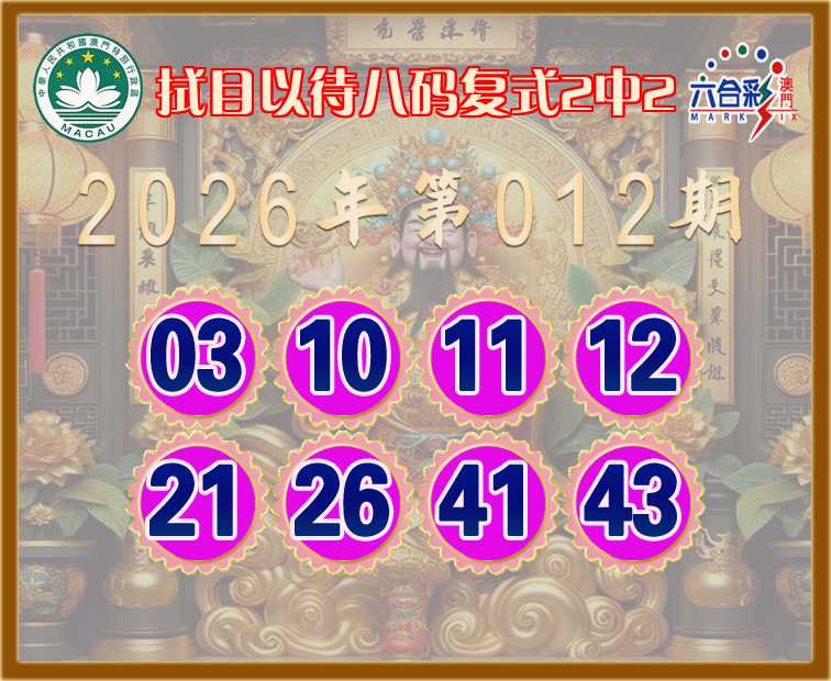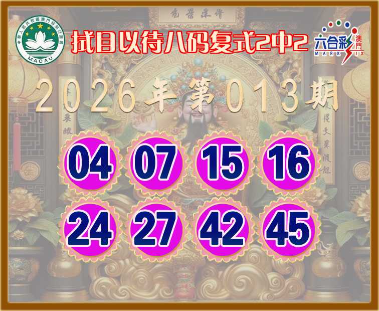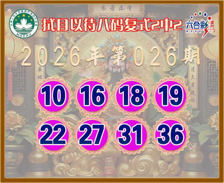 026期:《拭目以待》 🎀八码复式2中2🎀